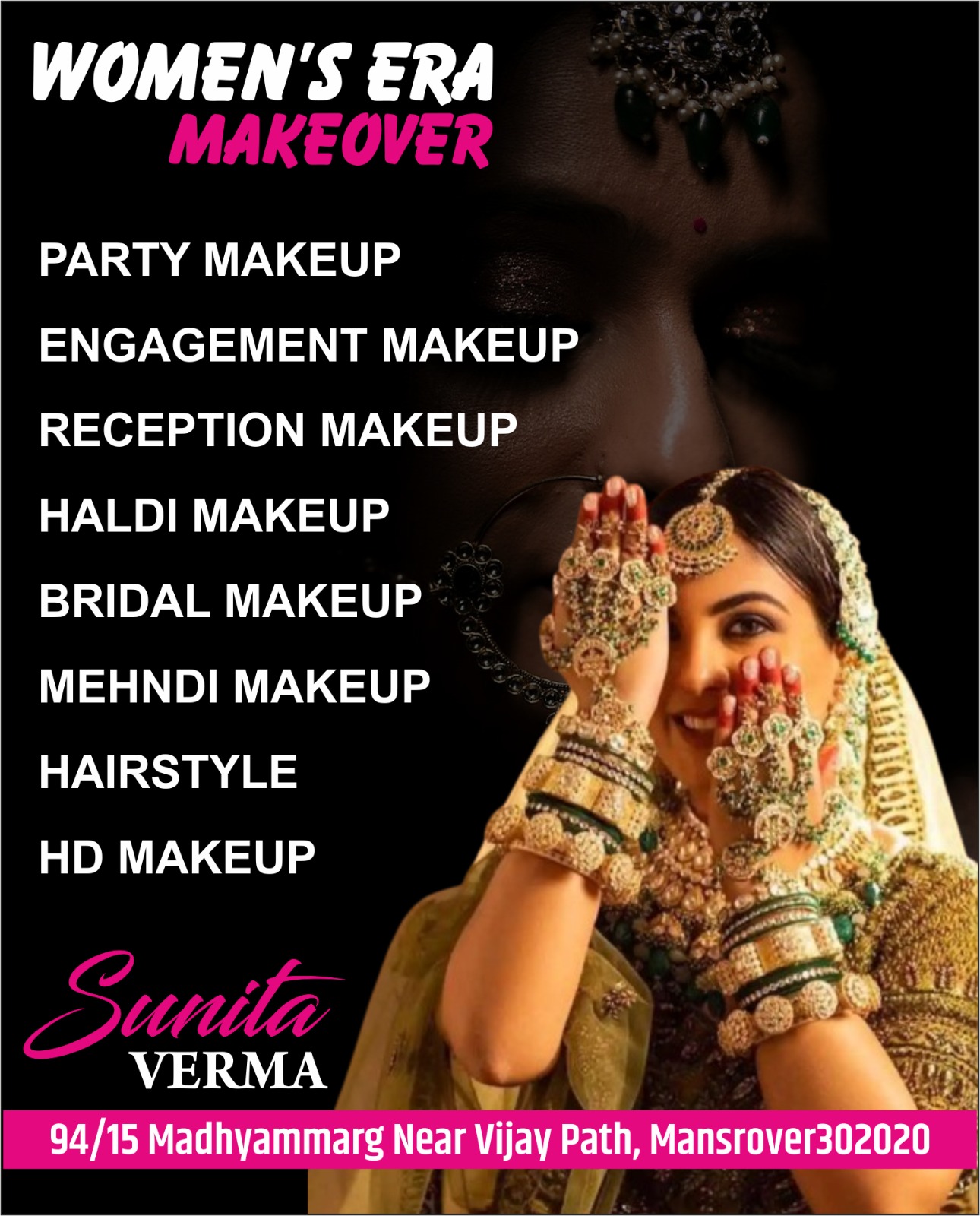 Women’s Era Makeover by Sunita Verma is a premium beauty studio in Jaipur, known for delivering flawless bridal looks and exceptional skin care results. With expertise in HD makeup and advanced skin treatments, the studio focuses on enhancing natural beauty with a radiant, long-lasting glow. From luxury facials to professional hairstyling, every service is designed to provide a high-end, personalized beauty experience for your special moments.