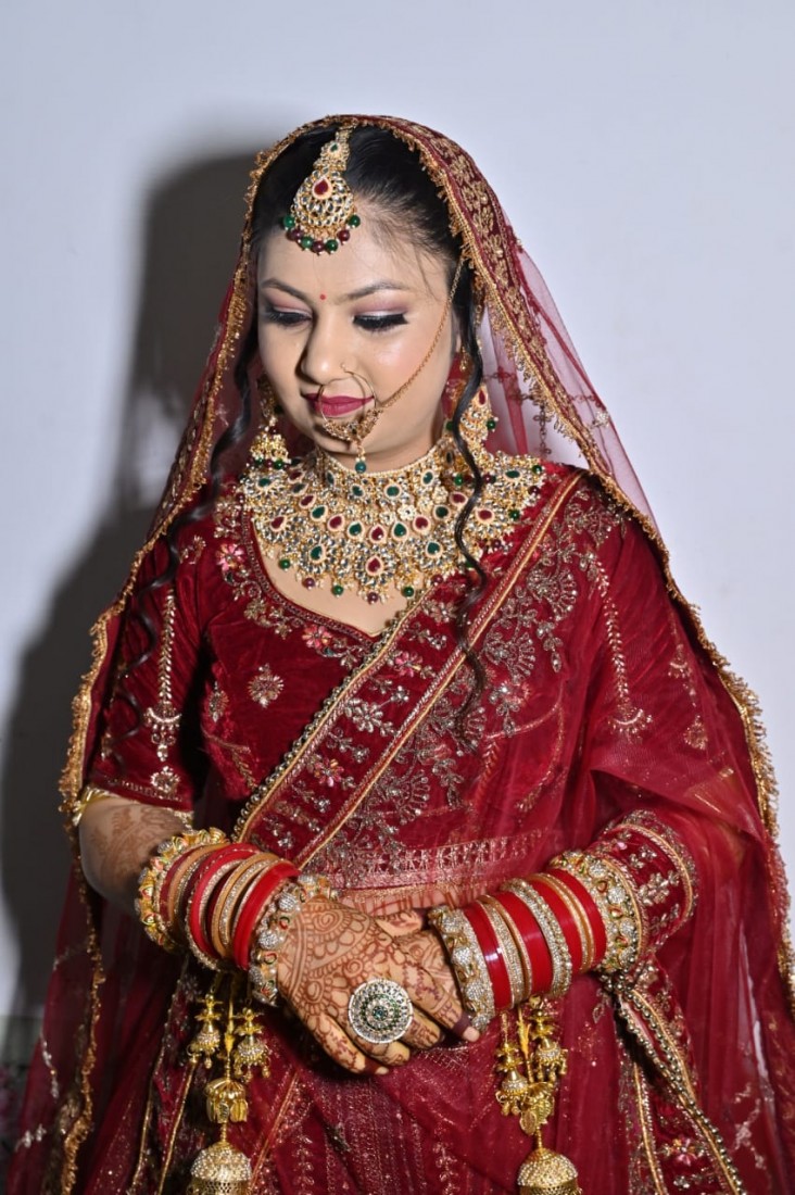 Bridal makeup, party makeup, engagement makeup, haldi makeup, and reception makeup with long-lasting and flawless results.