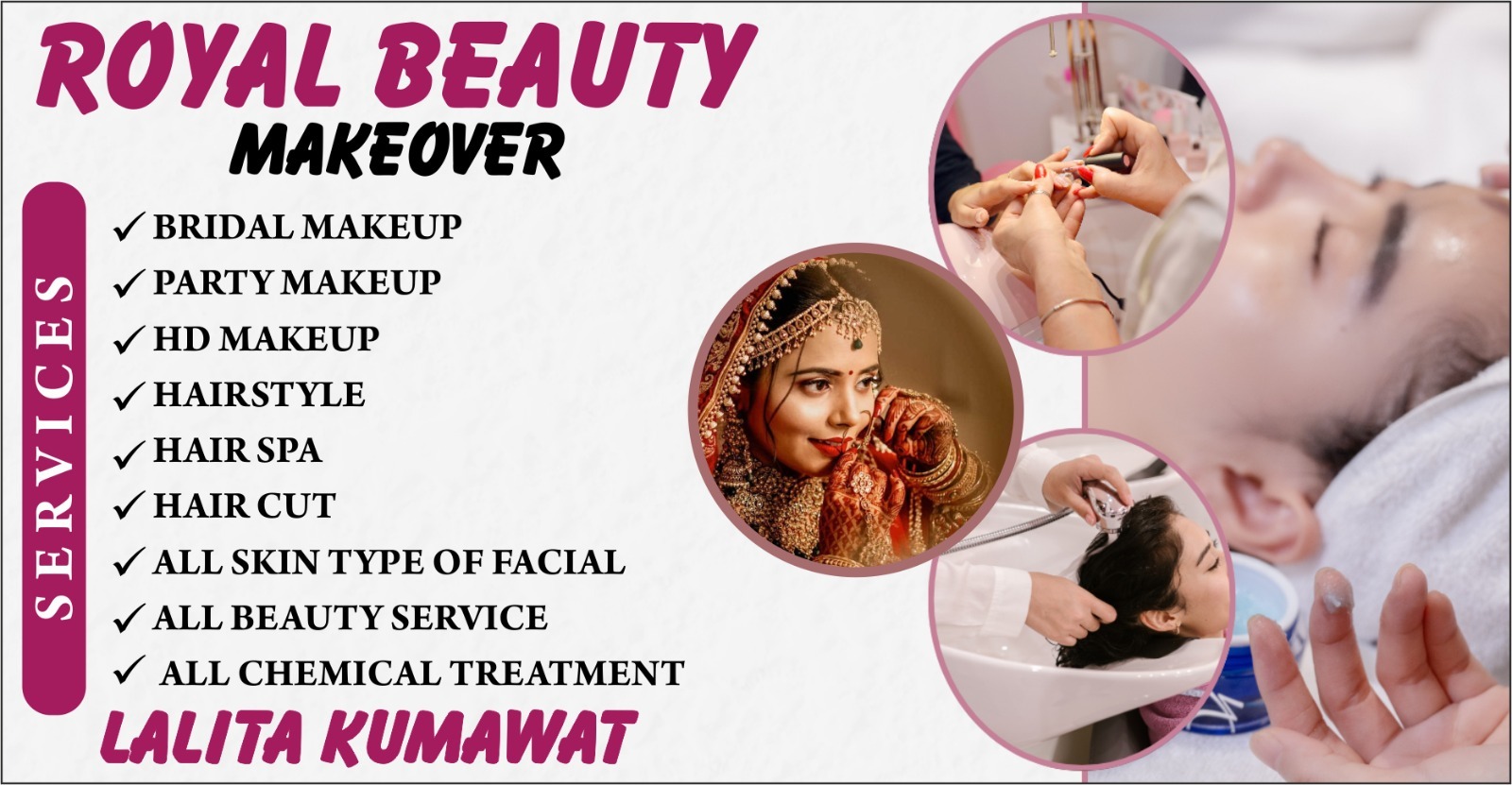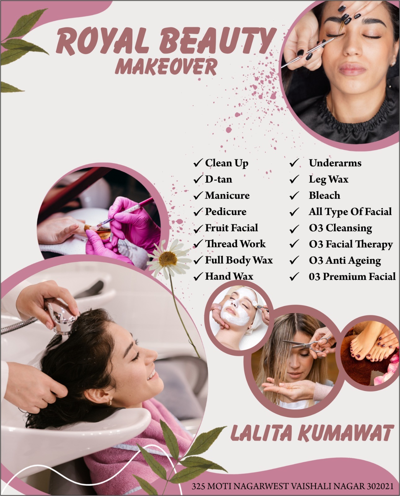 We provide premium Facials (O3+ Cleansing, Anti-Aging, Fruit Facial & Skin Therapy) to improve skin tone, hydration, and natural glow. Our treatments are designed to refresh and rejuvenate your skin for a healthy and youthful appearance.