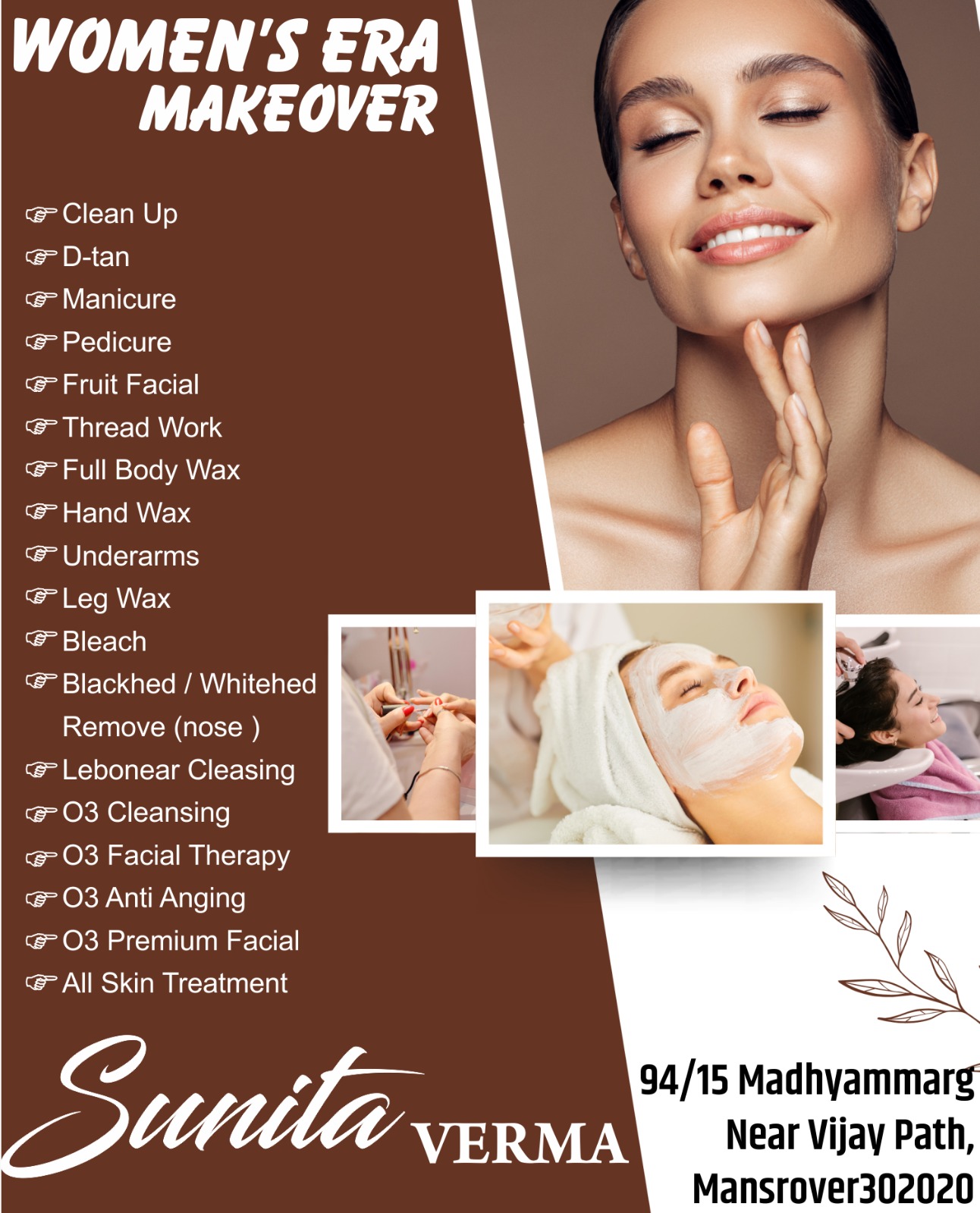 Women’s Era Makeover by Sunita Verma is a premium beauty studio in Jaipur, known for delivering flawless bridal looks and exceptional skin care results. With expertise in HD makeup and advanced skin treatments, the studio focuses on enhancing natural beauty with a radiant, long-lasting glow. From luxury facials to professional hairstyling, every service is designed to provide a high-end, personalized beauty experience for your special moments.