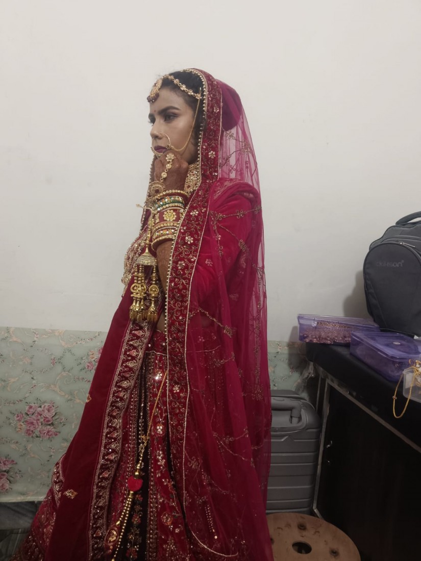 Bridal makeup, party makeup, engagement makeup, haldi makeup, and reception makeup with long-lasting and flawless results.